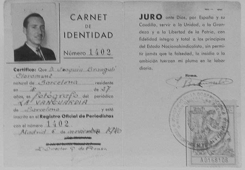 | Carnet de Joaquim Brangulí, hijo de Josep Brangulí, también fotoperiodista |